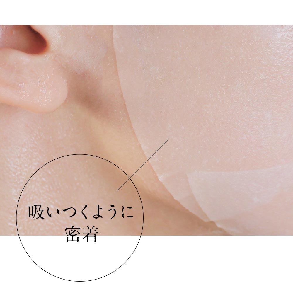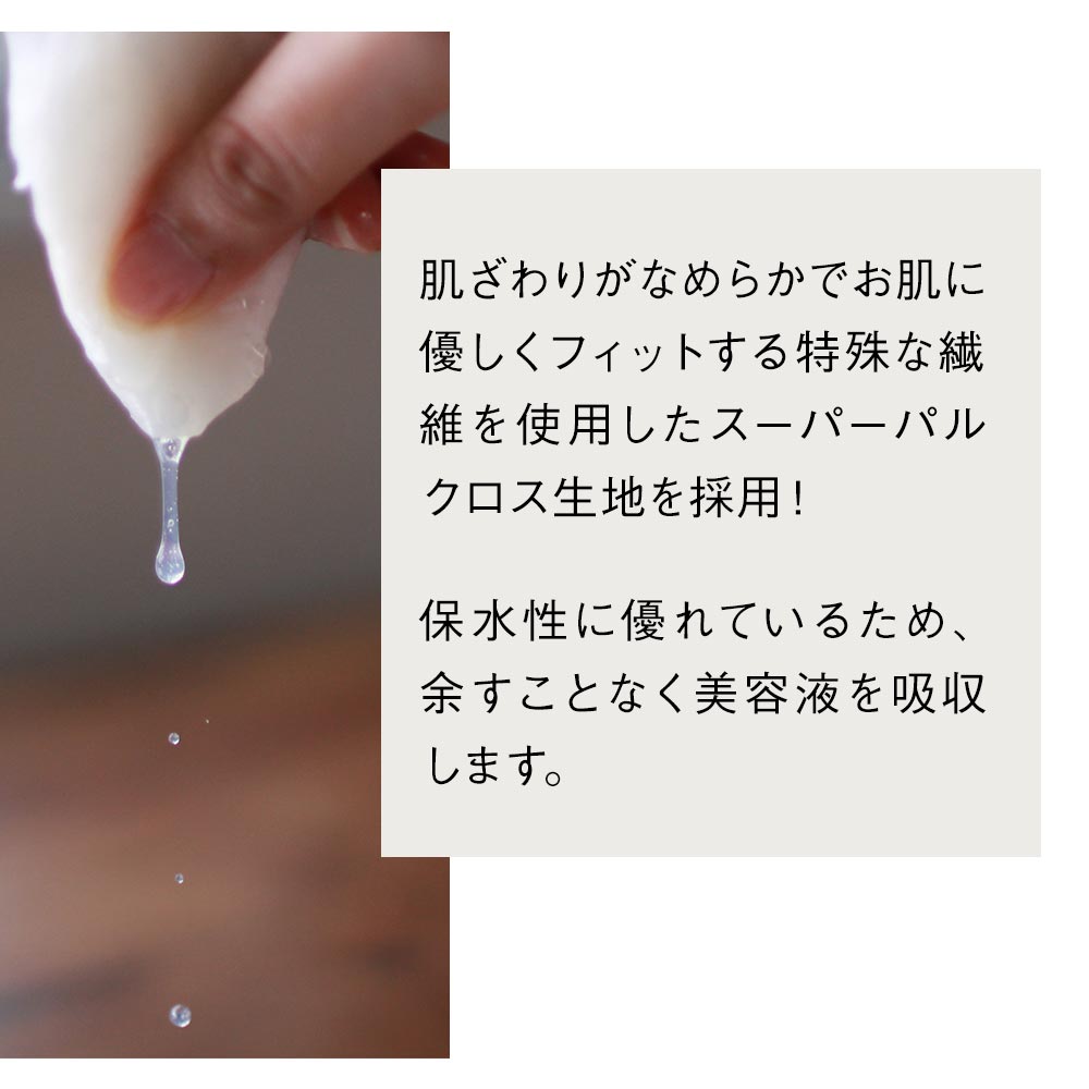 | 洗顔後、マスクを目と口の位置に合わせ、顔全体にはりつけ密着させます。 そのまま10~15分程度おいてからマスクをはがしてください。 お肌に残った美容液は、手のひらでお顔や首などになじませてください。 |