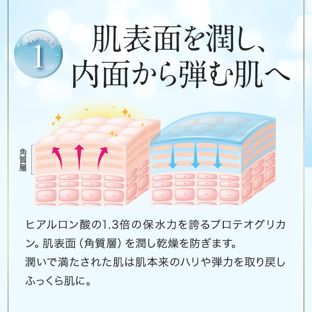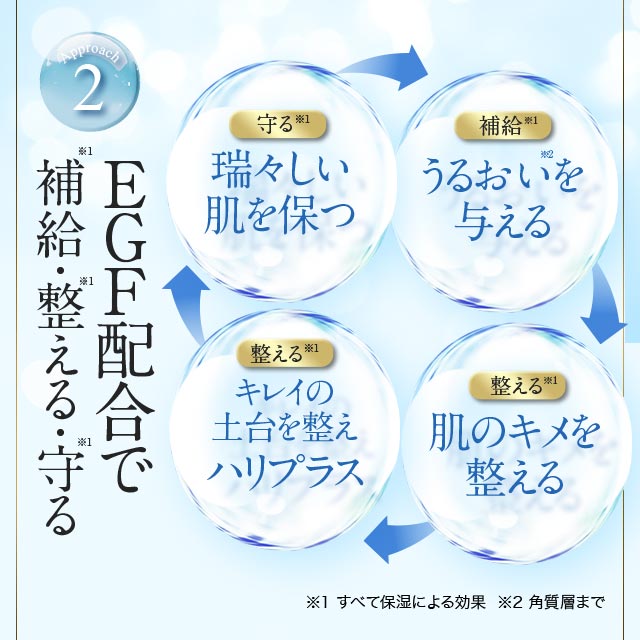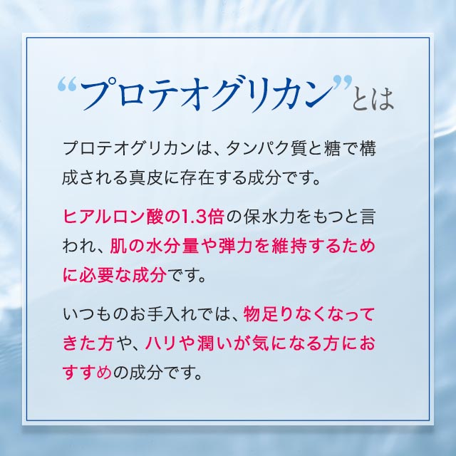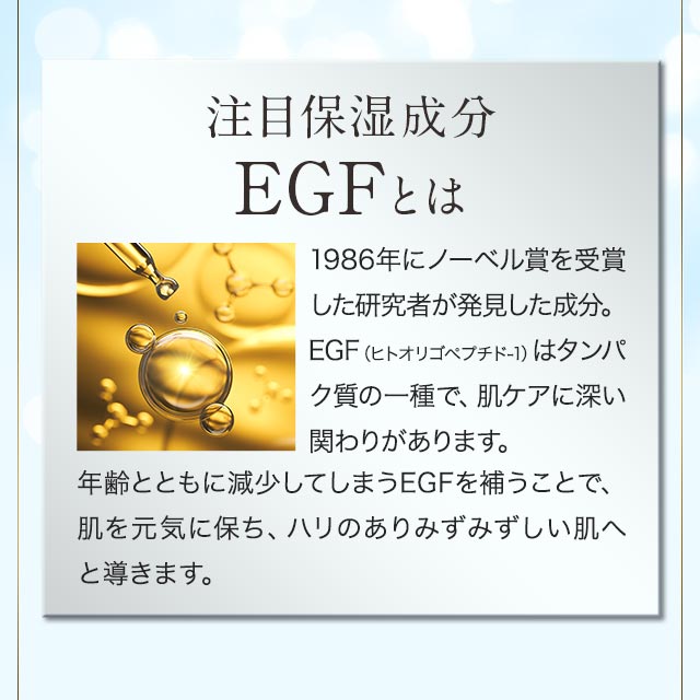 ヒアルロン酸の130%の保水力を誇り、最も潤いを与えてくれます。EGF作用も有り、肌の調子を整えます。