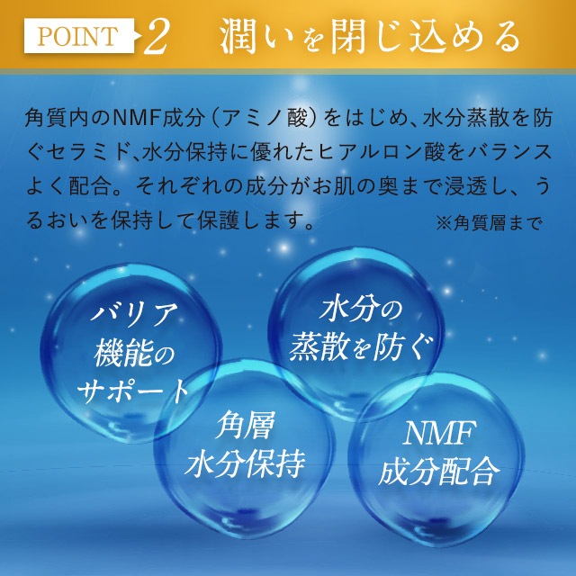 | 肌あれ・あれ性。あせも・しもやけ・ひび・あかぎれ・にきびを防ぐ。油性肌。かみそりまけを防ぐ。メラニンの生成を抑え、しみ、そばかすを防ぐ。日やけ・雪やけ後のほてりを防ぐ。肌をひきしめる。肌を清浄にする。肌を整える。皮膚をすこやかに保つ。皮膚にうるおいを与える。皮膚を保護する。皮膚の乾燥を防ぐ。 |