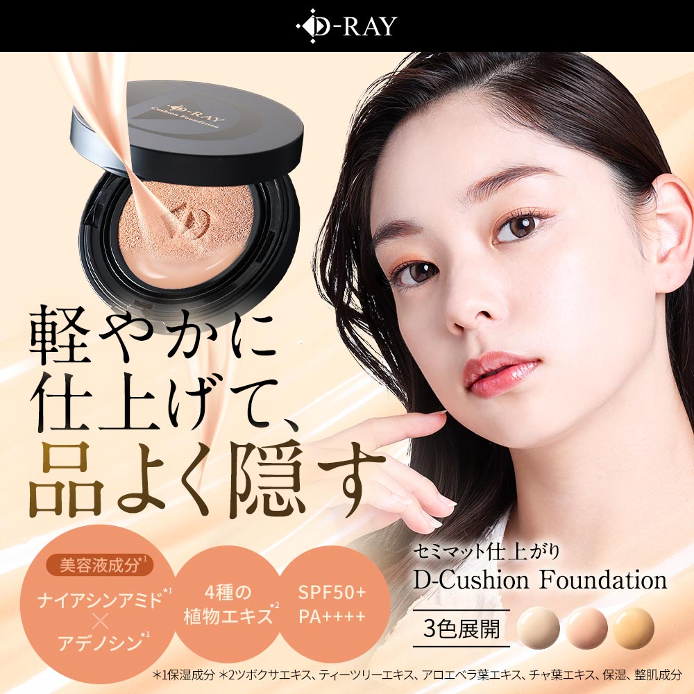 クッションファンデ 【ディーレイ公式】 クッションファンデーション 15g ファンデーション カバー力 ツヤ肌 毛穴カバー SPF50 ナイアシンアミド スキンケア 韓国コスメ 保湿 UV 紫外線 ツヤ セミマット 乾燥肌 dray