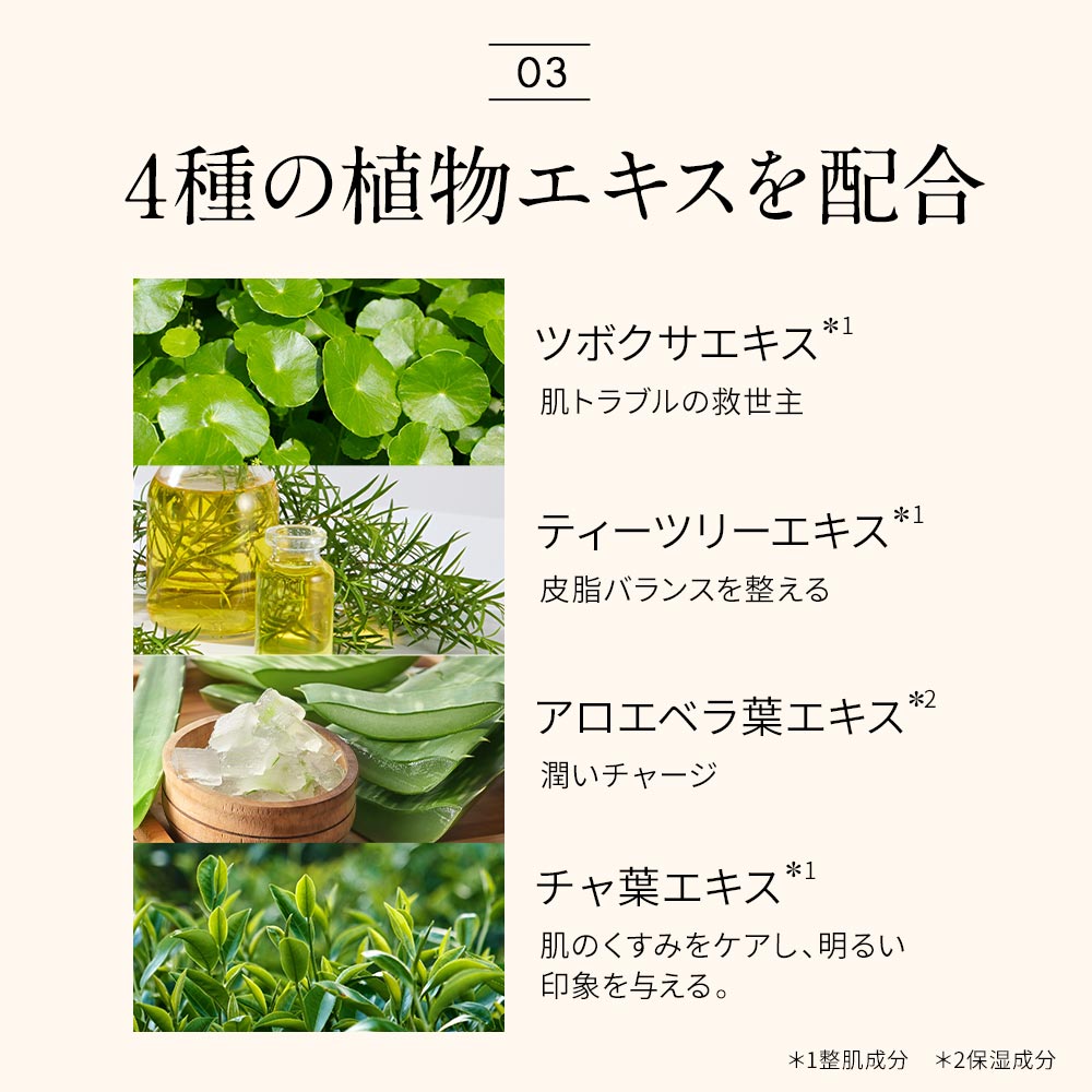 水,酸化チタン,シクロペンタシロキサン,酸化亜鉛,メトキシケイヒ酸エチルヘキシル,DPG,BG,セチルPEG/PPG-10/1ジメチコン,エチルヘキサン酸セチル,1,2-ヘキサンジオール,ナイアシンアミド,ビスエチルヘキシルオキシフェノールメトキシフェニルトリアジン,セスキオレイン酸ソルビタン,メタクリル酸メチルクロスポリマー,イソステアリン酸ソルビタン,水酸化Al,硫酸Mg,ラウロイルリシン,トリエトキシカプリリルシラン,ジステアルジモニウムヘクトライト,ステアリン酸,カプリル酸グリセリル,クエン酸トリエチル,シリカ,(ジメチコン/ビニルジメチコン)クロスポリマー,アデノシン,シクロテトラシロキサン,ジフェニルシロキシフェニルトリメチコン,アロエベラ葉エキス,ティーツリーエキス,チャ葉エキス,ツボクサエキス,香料,酸化鉄